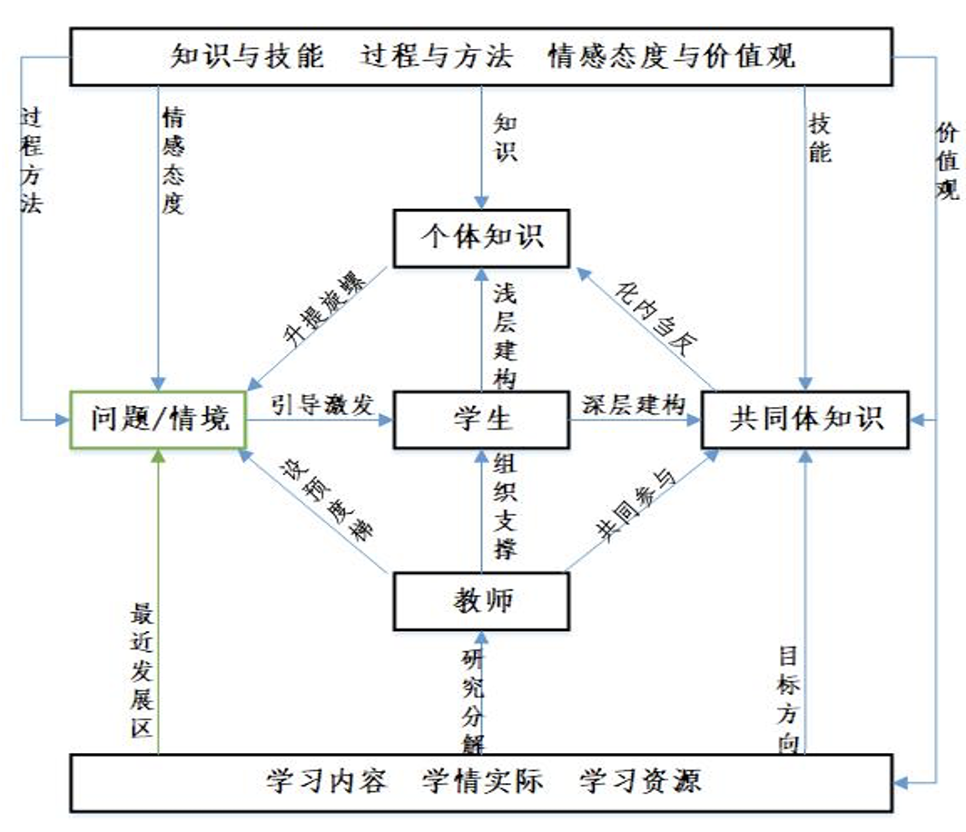 三是依托建构理论,全面构架易加生态课堂实操样态,实现知识建构、思维创生和人的成长。易加生态课堂教学分为课前、课中、课后三个阶段。课前主要是教师备课,分为个人自备、集体议备、个体复备,需要完成教学设计、编制导学提纲和课后限时练习材料等;课中主要分为“引导自学、探究展学、评点省学”三个环节。